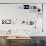 Instalación. 2 manuscritos y collage en papel, 45 x 70 cm c/u, 1 mesa de luz
