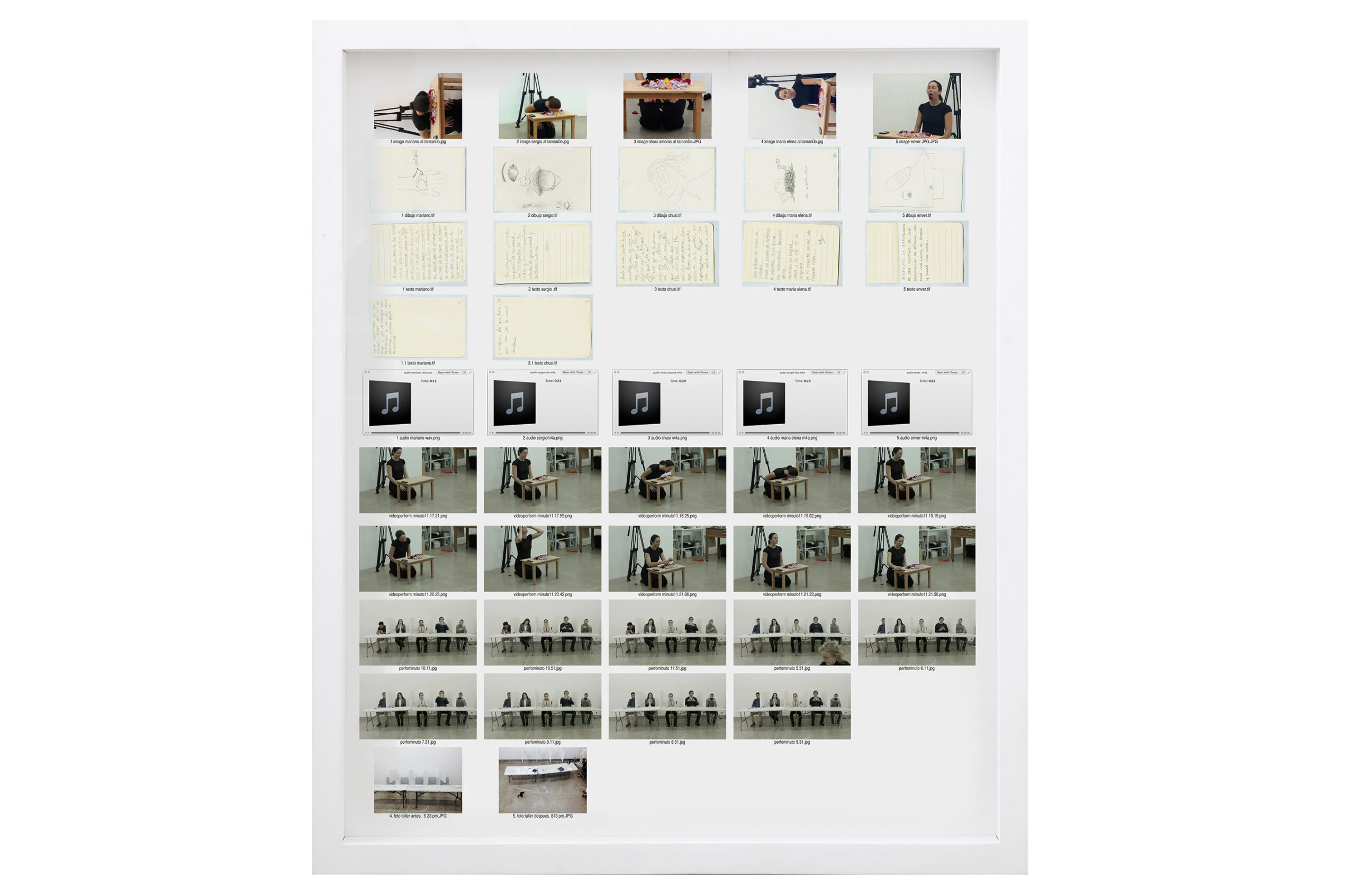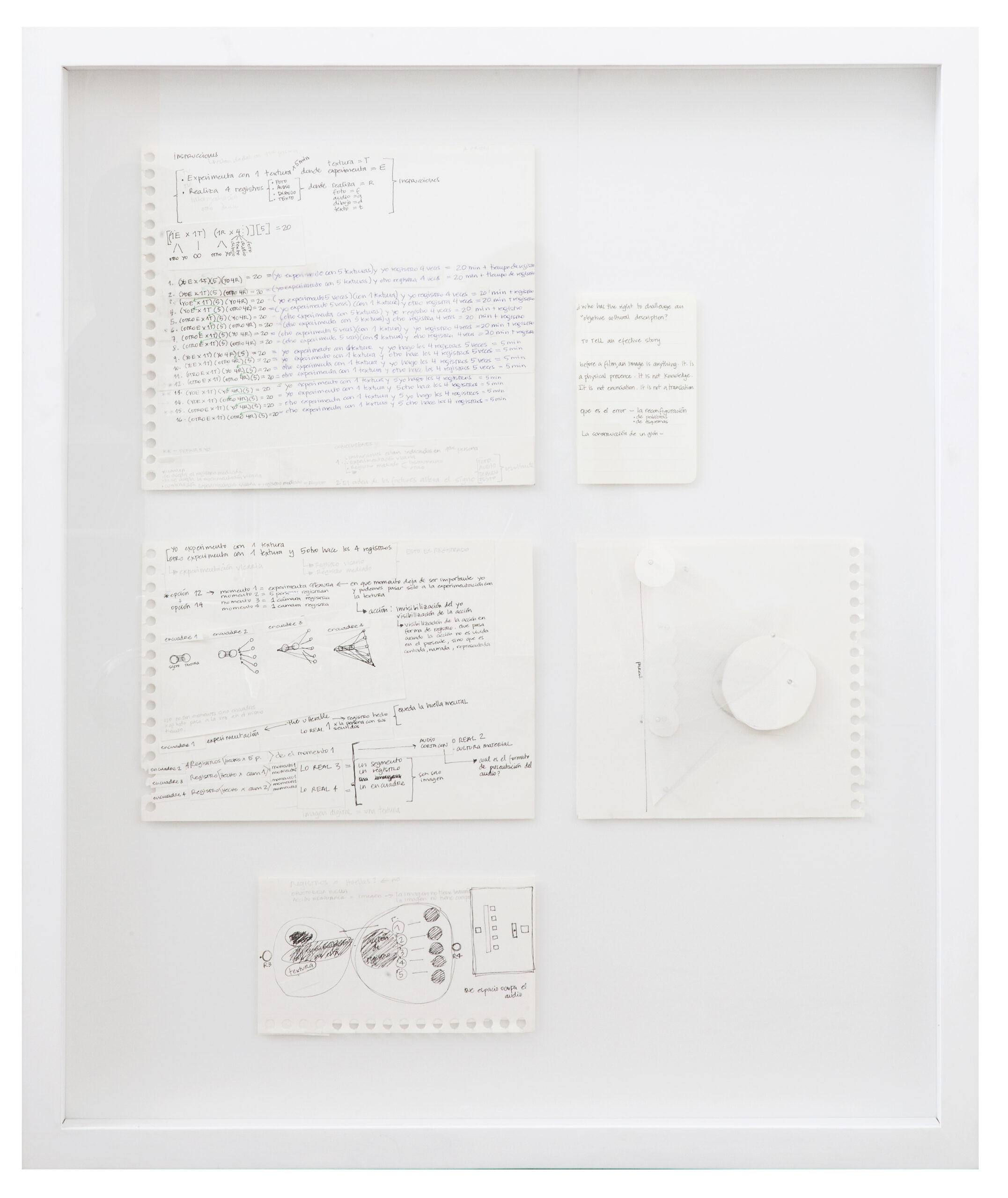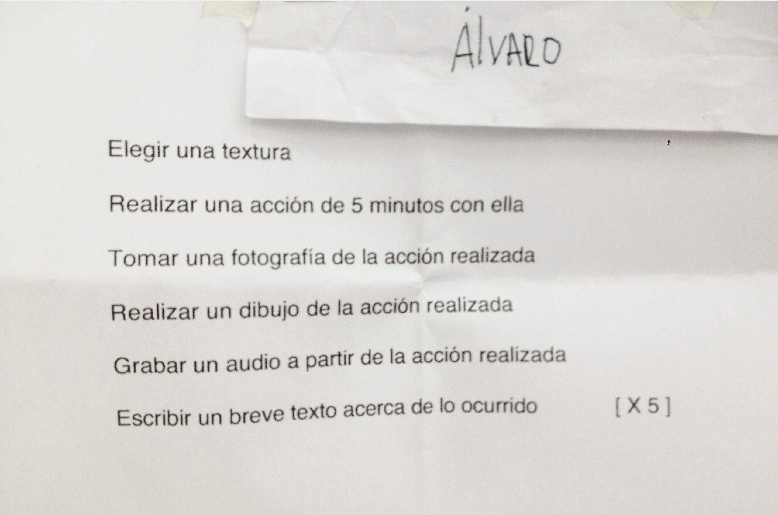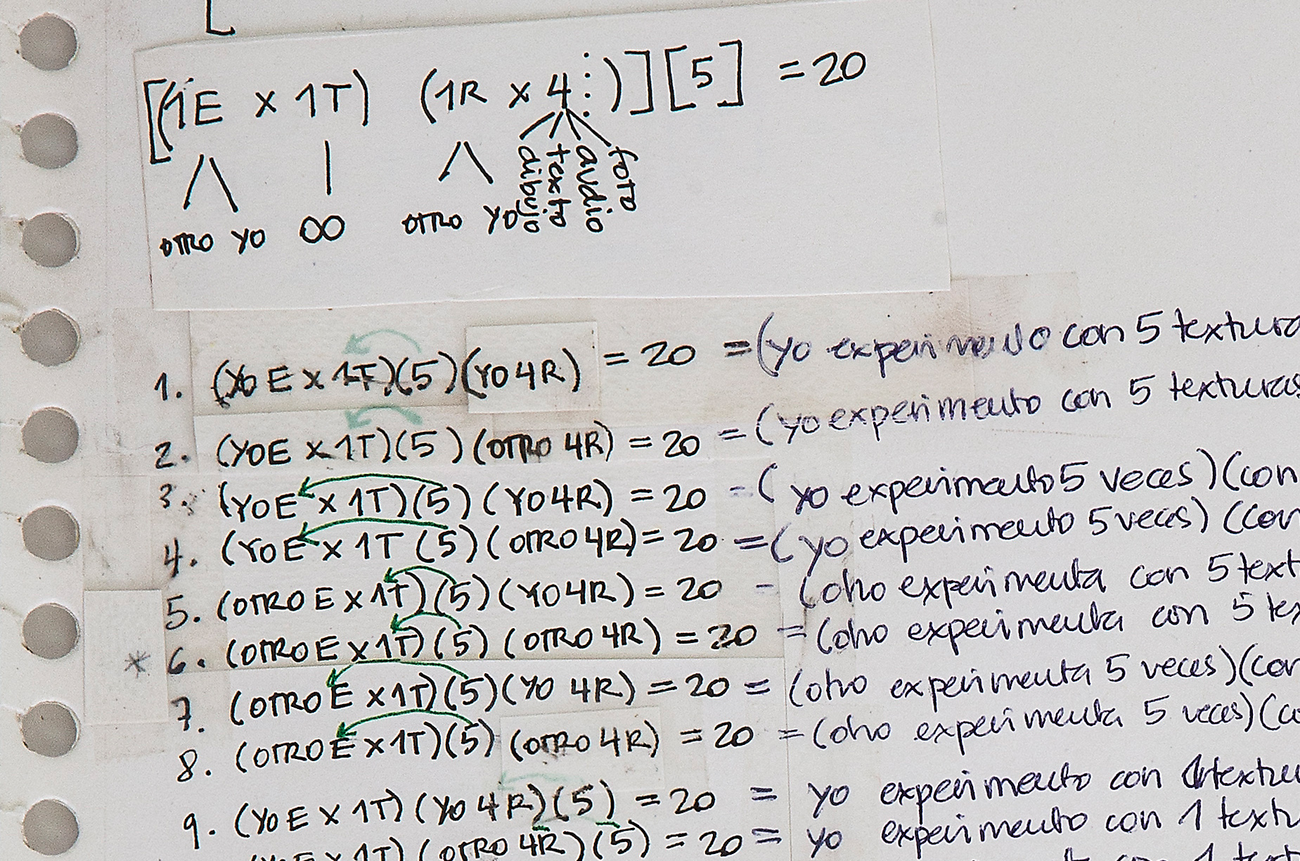 Gómez explora la infinidad de posibilidades de interpretación de una serie aparentemente simple de instrucciones, sistematizando sus posibilidades combinatorias que dan lugar a una metodología para llevar a cabo una de las posibilidades. (Extracto del texto de Max Hernandez Calvo. 2014)