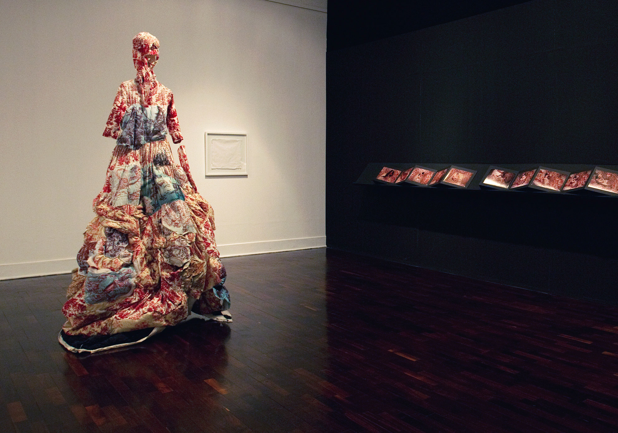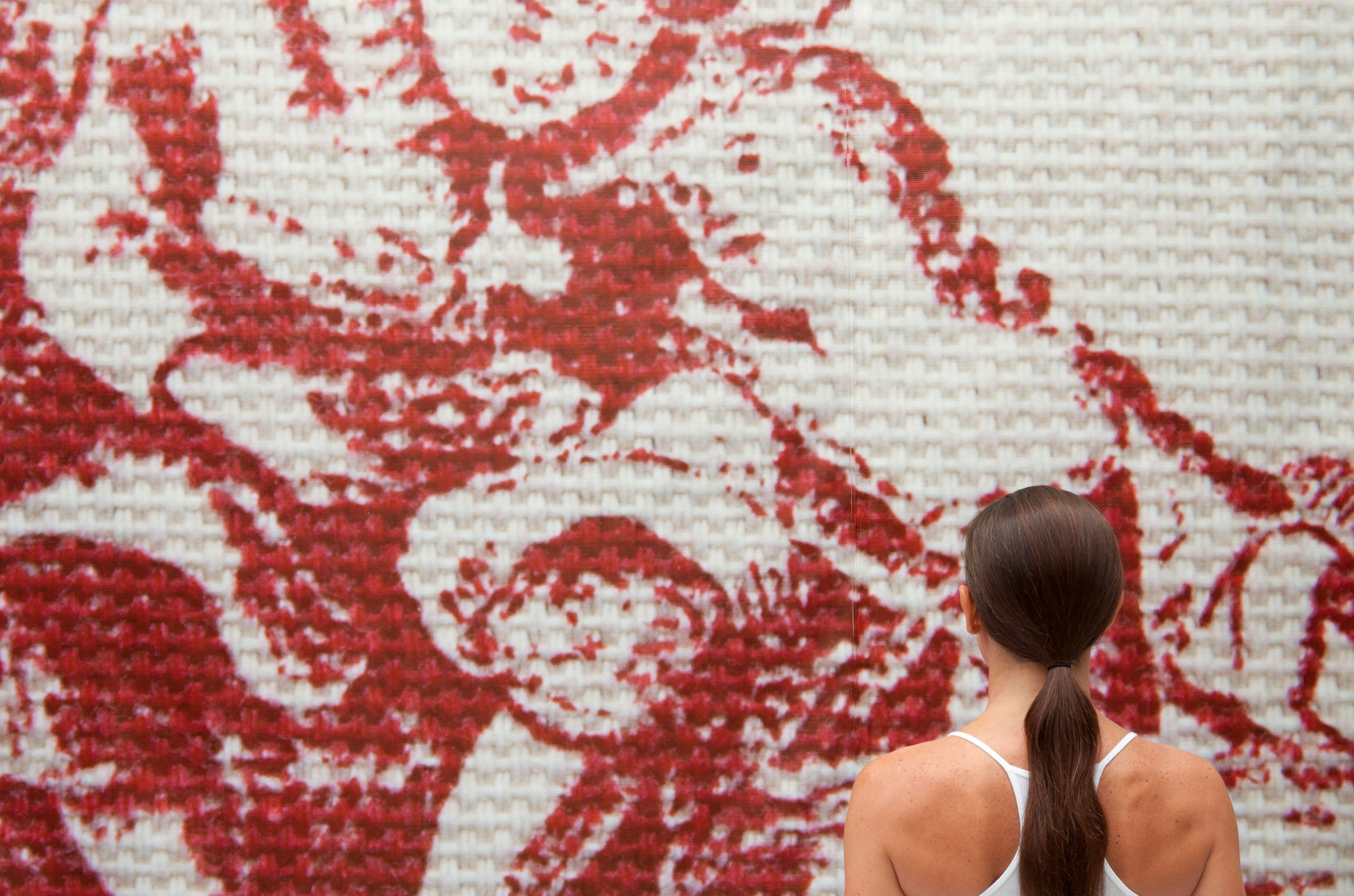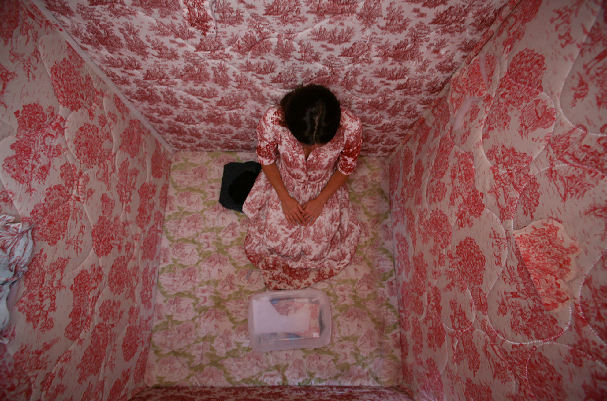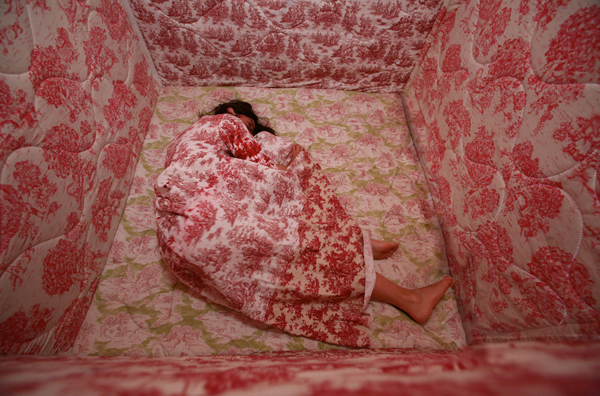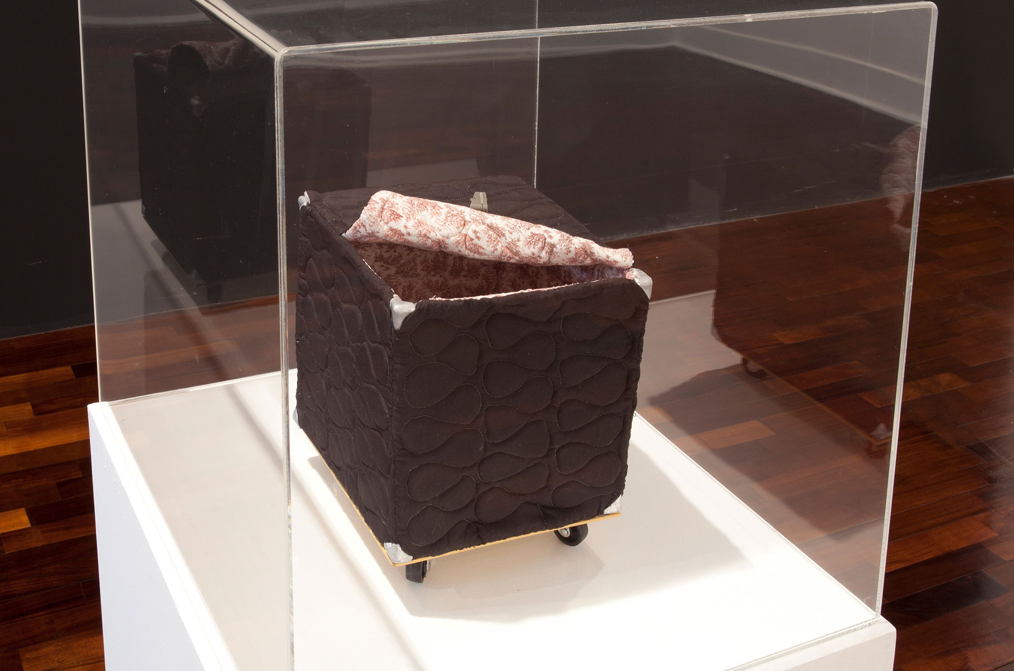 La exposición Ocupa explora la relación entre el cuerpo de mujer, el espacio y las formas de control y aislamiento a través de imágenes, esculturas de pequeńo formato, bordados y, principalmente, la video-instalación Ocupa en dos canales. El contraste entre la construcción de una casa por obreros y la acción íntima de la artista, que construye un refugio con tela, aguja e hilo, genera una tensión donde no queda claro si ese espacio es protección o encierro. La deconstrucción de la tela Toile de Jouy —con sus escenas idílicas— introduce una fricción entre esos imaginarios y la experiencia del cuerpo.