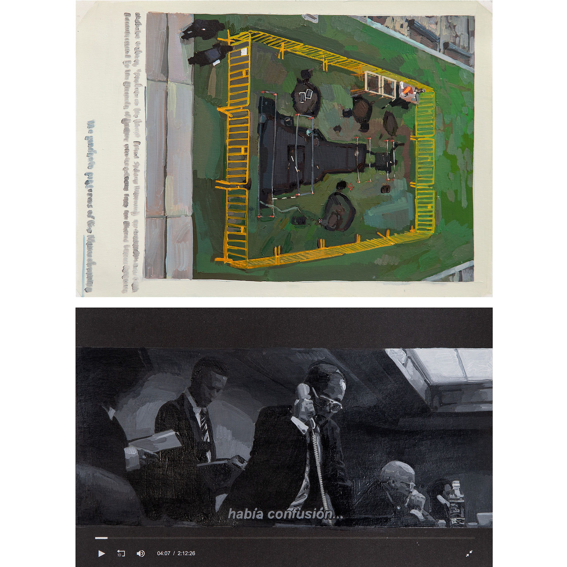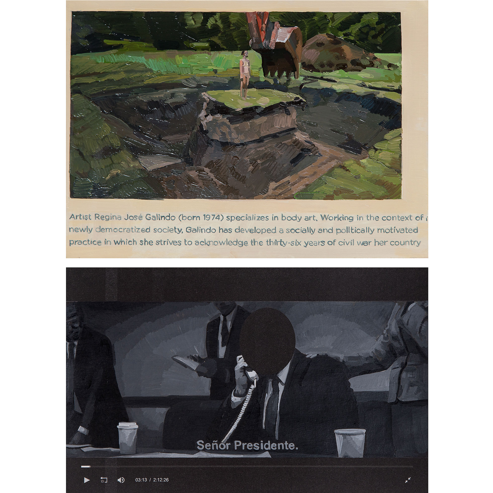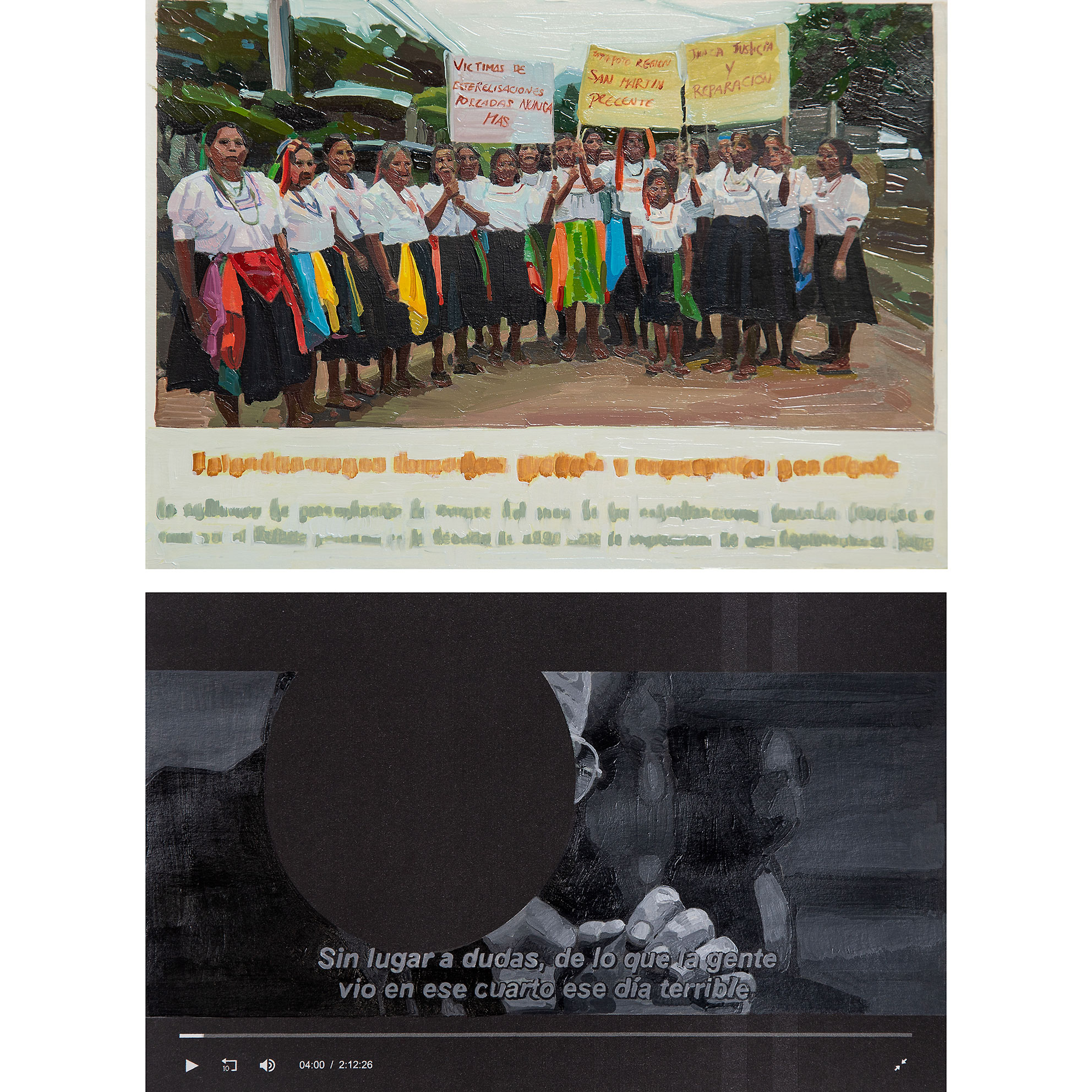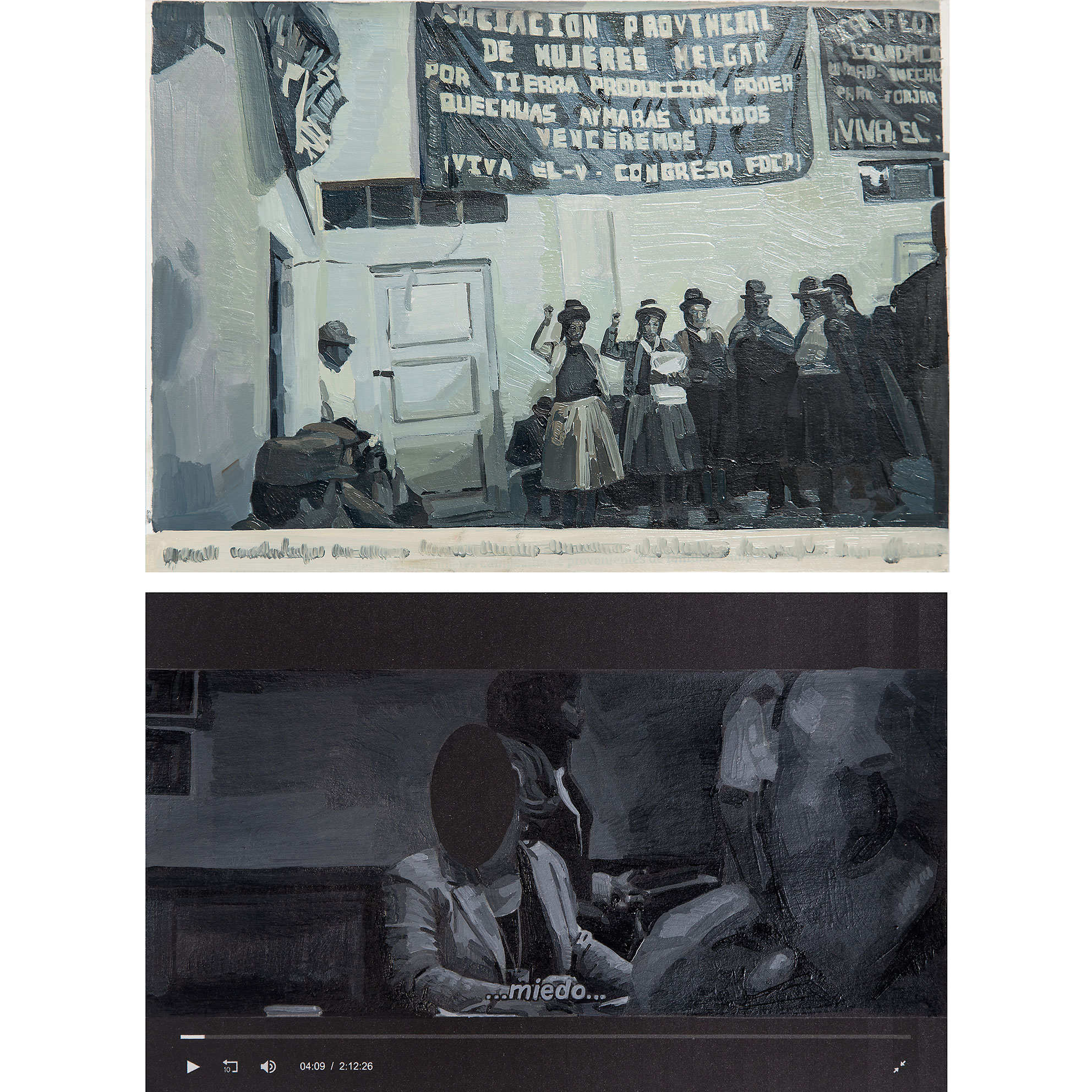 1 video. 2 polípticos de pintura al óleo sobre cartulina Canson.