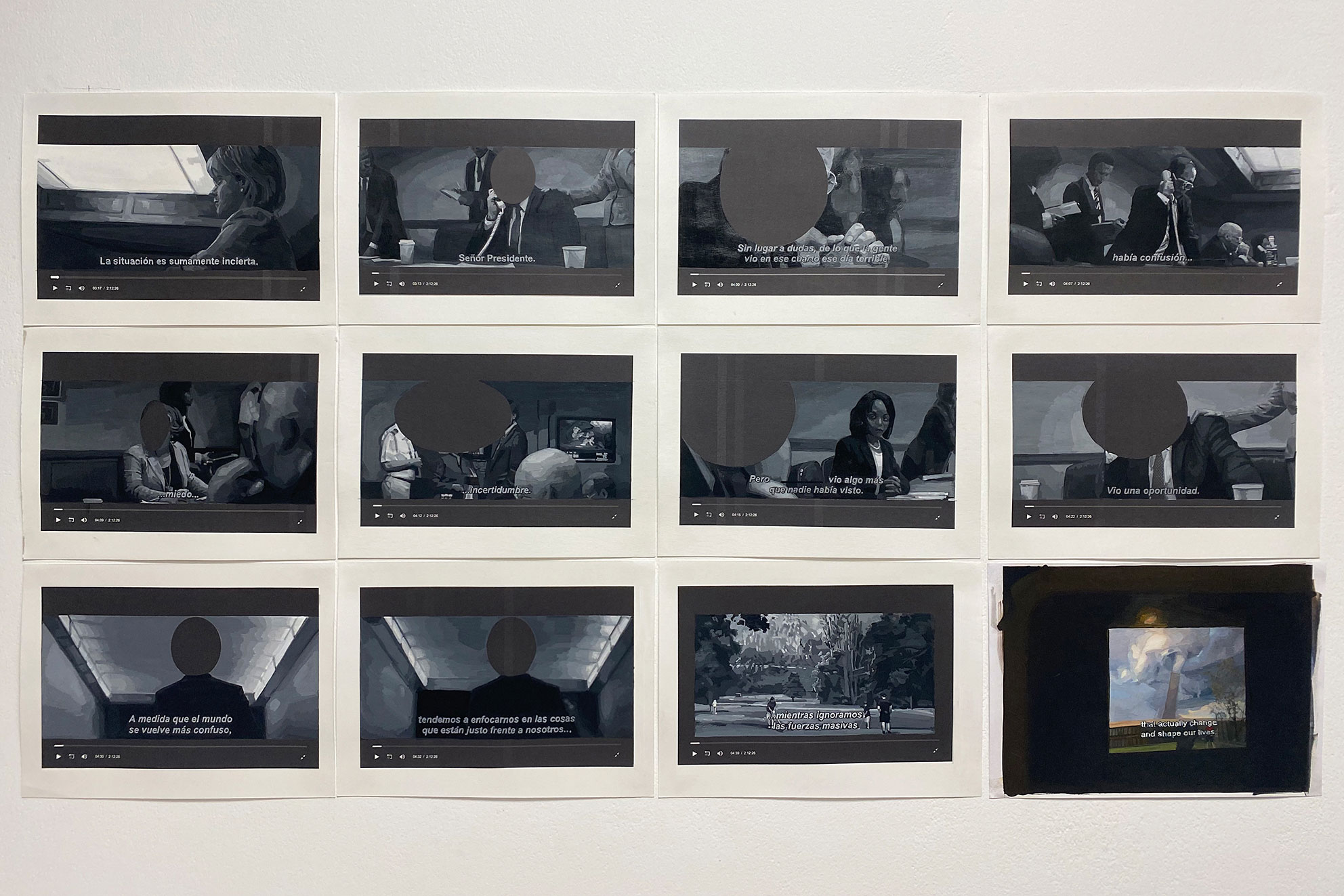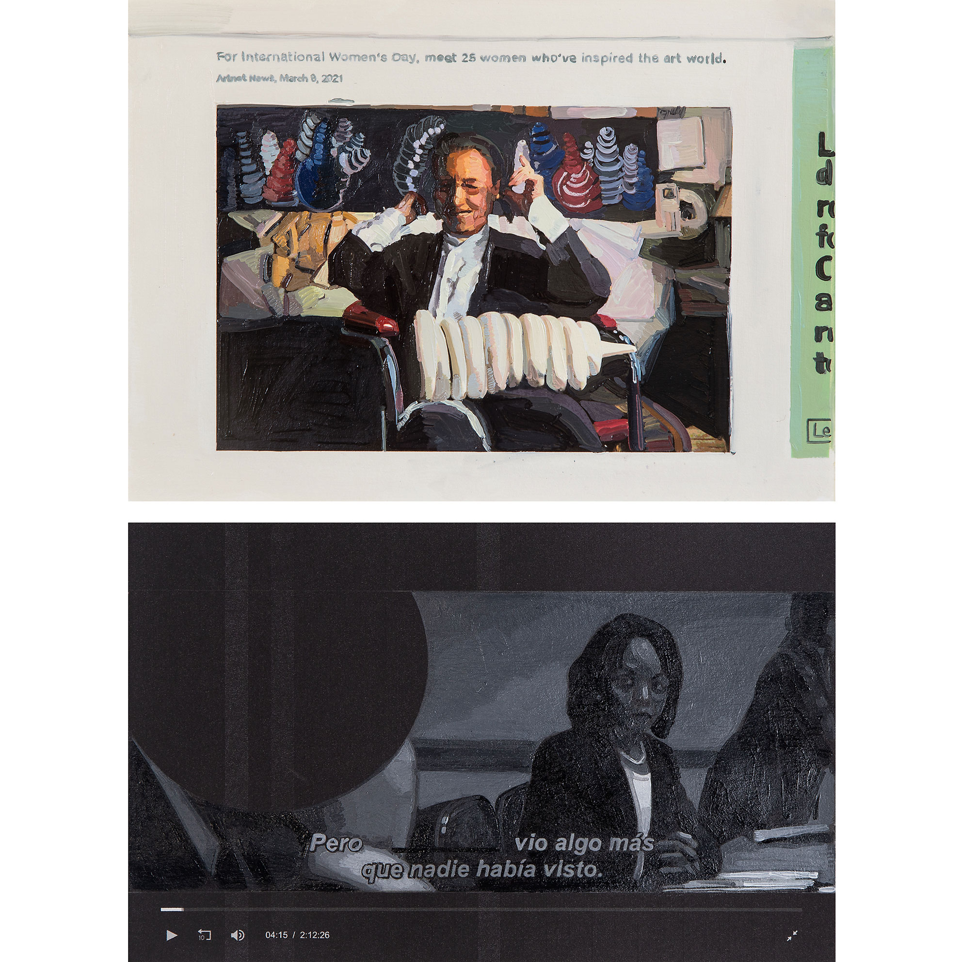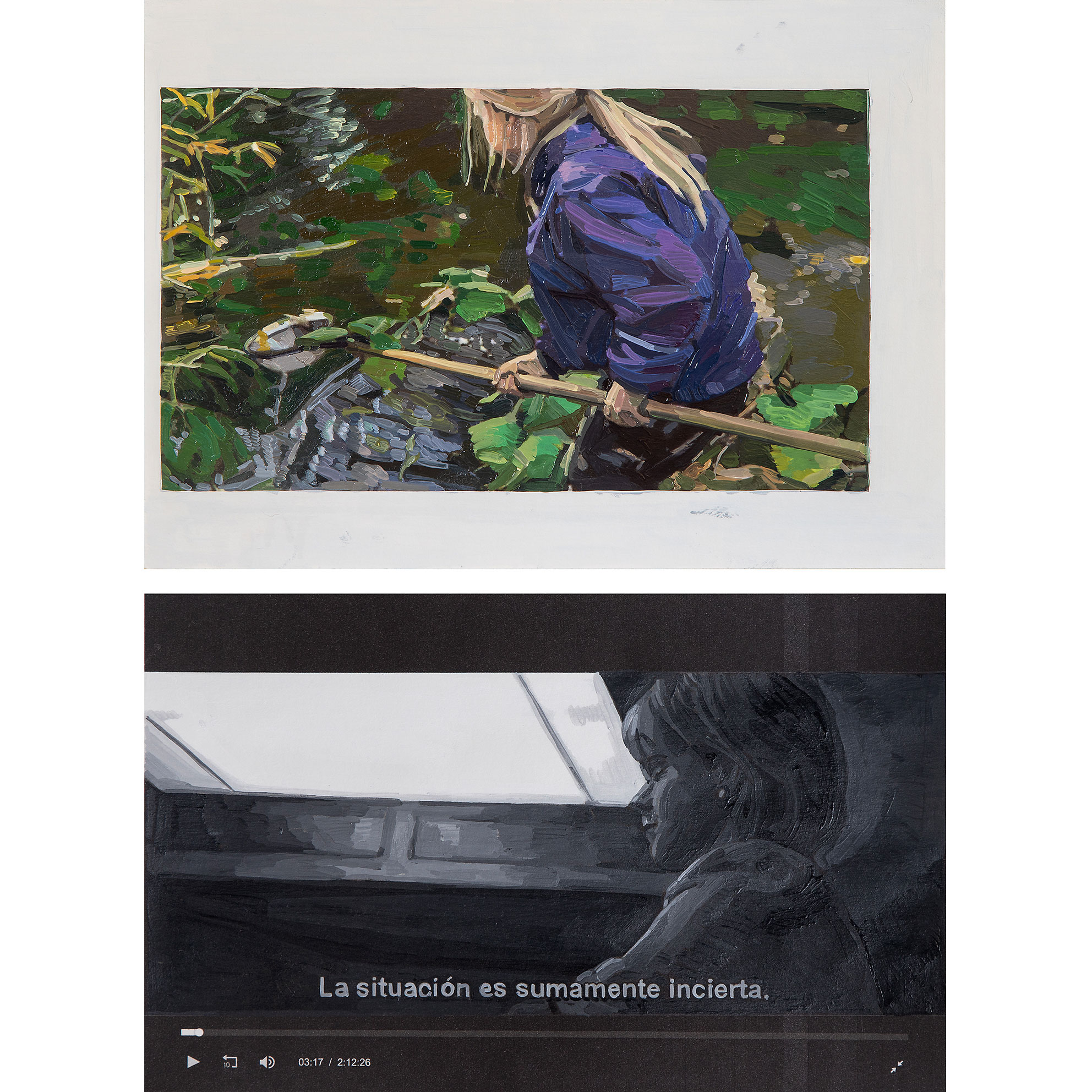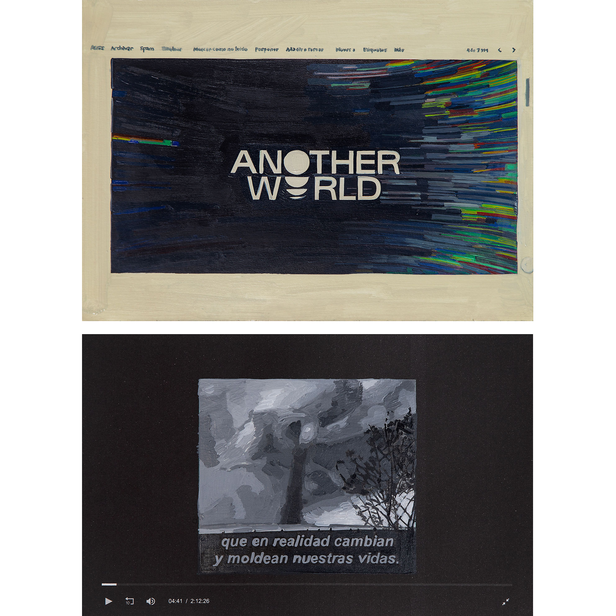 1 video. 2 polípticos de pintura al óleo sobre cartulina Canson.