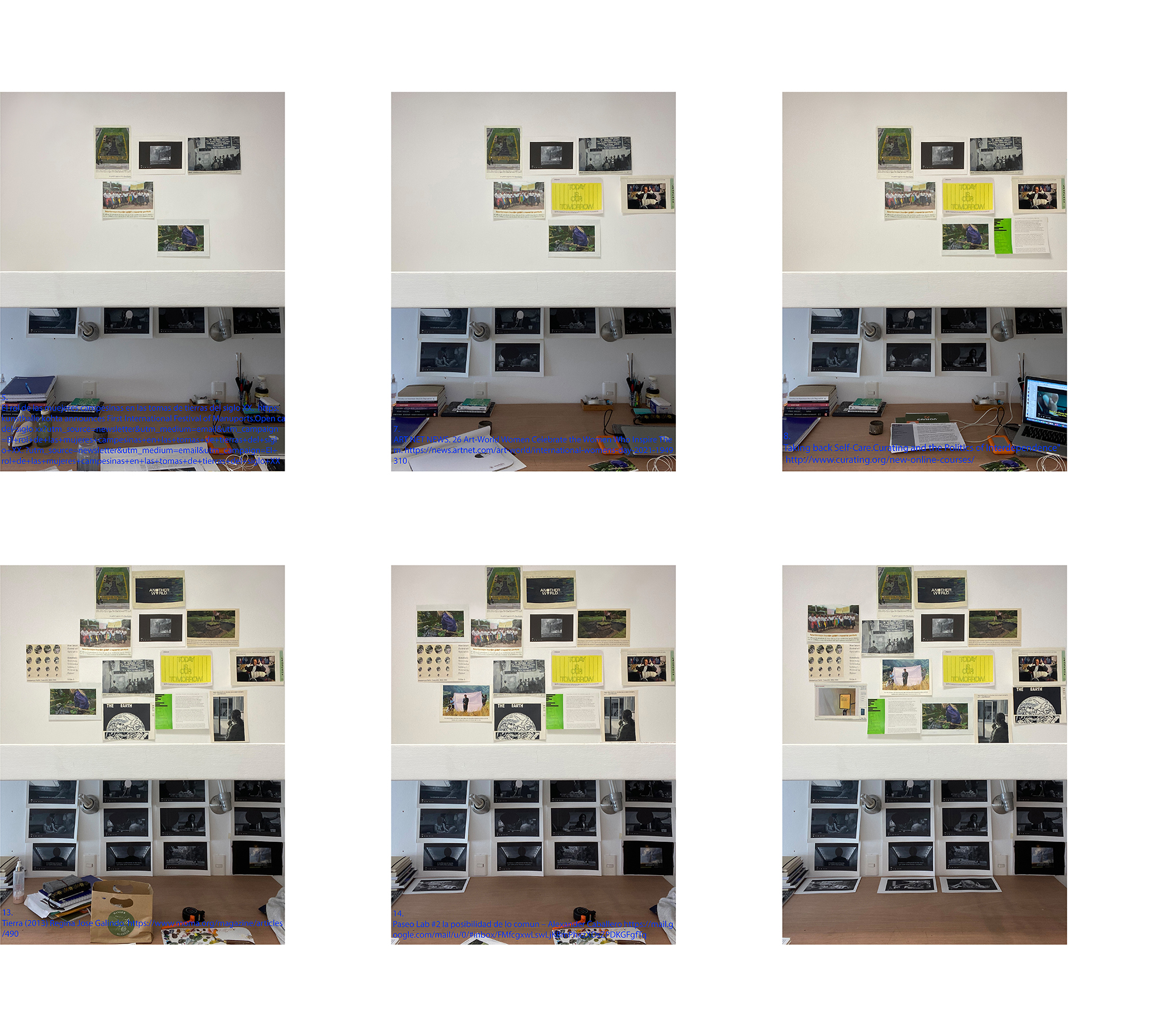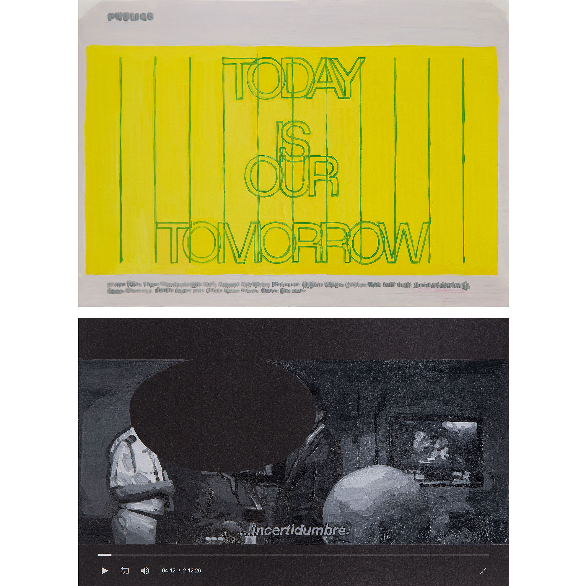today is our tomorrow que podría traducirse como el futuro es hoy, ó el futuro está siendo producido ahora, es el nombre de un festival organizado por la agencia curatorial PUBLICS (Helsinki). El festival propone que (cito) «aprendamos a desligarnos de la ansiedad por el futuro ya que no hay más tiempo que el presente para transformar, re-imaginar y representar nuestro(s) momento(s)”. También fué el título de uno de los artículos leídos desde donde sustraje una imagen que copié con pintura para el proyecto. Finalmente es también el título de este proyecto del cual me apropio de manera literal porque pone en palabras y de manera eficiente la sensación que me envolvía durante la pandemia. Lo que comprendas hoy, los hábitos que cambies, las ideas que adoptes hoy es lo que seremos mañana. Hoy hay una oportunidad.